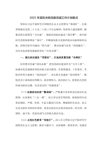 加强理论学习 提升组织建设 丰富活动形式 强化作风建设 增强服务意识 推进党风廉政建设 加强队伍建设 完善制度机制 创新工作方法 深化主题教育 实现高质量发展 加快信息化建设 提升党建工作科学化水平 强化基层党组织功能 发挥党员先锋模范作用 注重青年人才培养 做好宣传引导工作 加强对外交流合作 打造特色党建品牌以下是小编为您整理分享的“2025年某机关局党委党建工作计划要点”相关内容,供您学习参考!