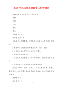 加强理论学习 提升组织能力 强化作风建设 推进党风廉政建设 增强服务意识 完善制度建设 加强队伍建设 实现工作目标下面是网友整理编辑的2025年机关党支部日常工作计划表相关范文,供大家参考学习,喜欢就下载支持!