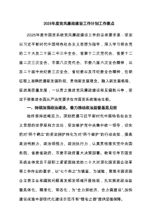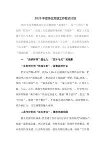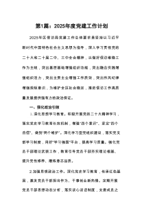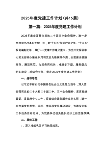 加强思想建设,深化理论学习,提升组织力,强化纪律作风,推动全面从严治党向纵深发展。以下由网友整理分享的2025年度党建工作计划最新15篇相关文档,供您学习参考,喜欢就分享吧!