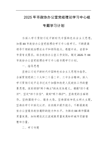 市政协办公室党组理论学习中心组将围绕核心主题深化学习加强实践结合提升能力素质以下由网友整理分享的2025年市政协办公室党组理论学习中心组专题学习计划相关文档,供您学习参考,喜欢就分享吧!