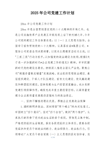 围绕核心加强理论学习深化组织建设提升队伍素质推动高质量发展。公文包网友为您分享整理的“2025年公司党建工作计划”范文资料,以供您参考学习之用,希望喜欢。