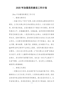 持续深化理论武装,强化组织建设,严格纪律监督,全面提高党的建设质量,为实现目标提供坚强保证!下面是小编为您整理的2025年加强党的建设工作计划范例,仅供参考,希望对您有所帮助。