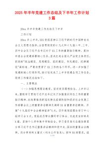 上半年党建工作稳步推进,成效显著;下半年继续深化学习,强化队伍建设,激发基层活力,共创辉煌!以下是阿拉网友分享的“2025年半年党建工作总结及下半年工作计划3篇”,供您学习参考,希望有所用途!