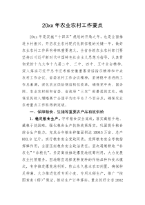 加强粮食安全保障,推进农业现代化,深化农村改革,促进农民增收,改善乡村环境,推动乡村振兴。以下由网友整理分享的要点20XX年农业农村工作要点相关文档,供您学习参考,喜欢就分享吧!
