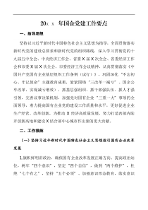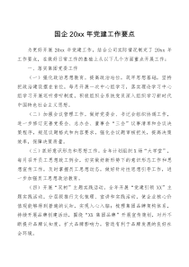 加强党的领导,深化理论武装,推进组织建设,强化纪律监督,促进企业高质量发展。下面是网友整理分享的要点20XX年国企党建工作要点相关资料,供大家学习参考,喜欢就分享吧!