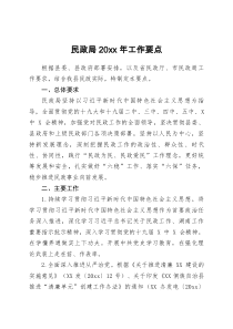 民政局将加强社会救助体系建设,推进养老服务发展,深化社区治理创新,提升公共服务水平。下面是小编为您整理的民政局20XX年工作要点范例,仅供参考,希望对您有所帮助。