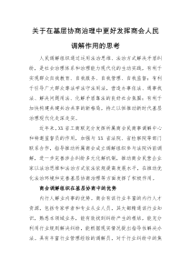 商会人民调解在基层协商治理中如何更有效地发挥作用,促进社会和谐稳定?以下由网友整理分享的思考计划关于在基层协商治理中更好发挥商会人民调解作用的思考相关文档,供您学习参考,喜欢就分享吧!