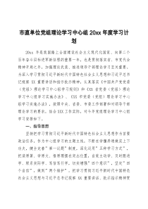 市直单位党组理论学习中心组年度学习计划围绕政治理论、业务知识和法律法规等内容开展系统学习。下面是网友整理分享的市直单位党组理论学习中心组20XX年度学习计划相关资料,供大家学习参考,喜欢就分享吧!
