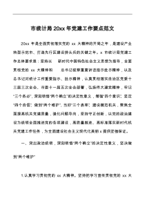 市统计局党建工作围绕加强政治建设、深化理论学习、提升组织力、强化作风建设、推进党风廉政建设展开。以下由网友整理分享的市统计局20XX年党建工作要点相关文档,供您学习参考,喜欢就分享吧!