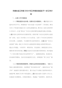 市委社会工作部顺利完成各项任务,社会服务效能显著提升,将继续深化改革创新,推动社会治理现代化。下面是网友整理编辑的市委社会工作部2024年工作情况总结及下一步工作计划相关范文,供大家参考学习,喜欢就下载支持!
