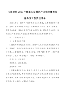 市局党组细化全面从严治党主体责任,明确任务分工,压实责任清单,确保各项工作落实到位!以下由公文包网友为您分享的范文资料,供您参考学习之用。
