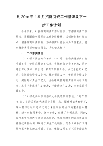 招商引资工作稳步推进,成效显著,后续将加大宣传力度,优化投资环境,吸引更多优质项目落地。以下是小编为您整理分享的“工作计划县20XX年19月招商引资工作情况及下一步工作计划”相关内容,供您学习参考!