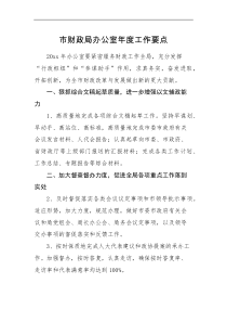 围绕财政管理核心任务,强化预算执行监督,提升资金使用效益,优化服务流程,加强队伍建设,如何确保各项措施落实到位?以下是阿拉网友分享的“工作计划市财政局办公室年度工作要点范文工作计划思路”,供您学习参考,希望有所用途!