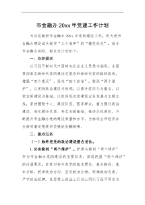 加强理论学习,深化作风建设,提升服务效能,推进党建工作与业务工作深度融合。下面是网友整理分享的工作计划市金融办20XX年党建工作计划范文工作思路相关资料,供大家学习参考,喜欢就分享吧!