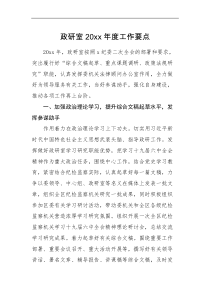 围绕政策研究核心任务,深化调研,强化分析,提升建议质量,加强队伍建设,推进成果转化。以下是阿拉网友分享的“工作计划政研室20XX年度工作要点”,供您学习参考,希望有所用途!
