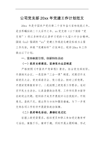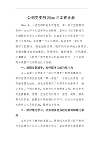 公司党支部将围绕加强组织建设、深化理论学习、促进党员作用发挥等方面开展工作。以下是小编为您整理分享的“工作计划公司党支部20XX年党建工作计划范文”相关内容,供您学习参考!