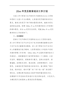 加强党员教育培训,提升理论素养,增强党性修养,推动工作创新与实践!公文包网友为您分享整理的“工作计划20XX年党员教育培训工作计划范文”范文资料,以供您参考学习之用,希望喜欢。