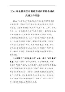 加强组织建设,创新活动方式,提升服务能力,促进非公有制经济和社会组织健康发展,如何有效推进?下面是网友整理编辑的工作计划20XX年全县非公有制经济组织和社会组织党建工作思路范文两新组织党建工作计划相关范文,供大家参考学习,喜欢就下载支持!