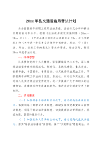 交通运输局将开展法律知识培训,增强全员法治意识,推进依法行政,确保法律法规在工作中得到有效执行。下面是小编为您整理的工作计划20XX年县交通运输局普法计划范例,仅供参考,希望对您有所帮助。