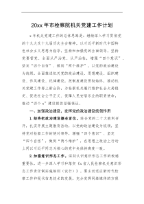 加强党组织建设,提升党员素质,深化党风廉政建设,推进检察工作高质量发展。以下是小编为您整理分享的“工作计划20XX年市检察院机关党建工作计划范文”相关内容,供您学习参考!
