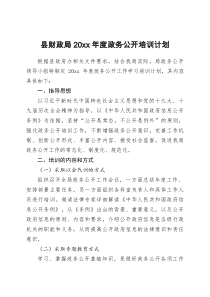 县财政局计划开展政务公开培训,涵盖政策解读、信息公开流程等内容,旨在提升工作人员业务能力和服务水平,具体内容如何安排?下面是网友整理分享的县财政局20XX年度政务公开培训计划相关资料,供大家学习参考,喜欢就分享吧!