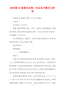 各位委员、各位同志,现在举行中国人民政治协商会议第XX届委员会第一次会议开幕式。以下是阿拉网友分享的“政协第XX届委员会第一次会议开幕式主持词”,供您学习参考,希望有所用途!