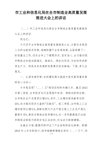 市工业和信息化局强调,将通过技术创新、产业升级等措施促进制造业高质量发展,具体如何实施?下面是网友整理分享的市工业和信息化局在全市制造业高质量发展推进大会上的讲话相关资料,供大家学习参考,喜欢就分享吧!