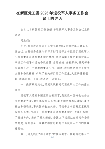 会议强调加强退役军人服务保障体系建设,提升就业创业扶持力度,如何更好地实现退役军人的社会价值?以下是阿拉网友分享的“在新区党工委2025年退役军人事务工作会议上的讲话”,供您学习参考,希望有所用途!