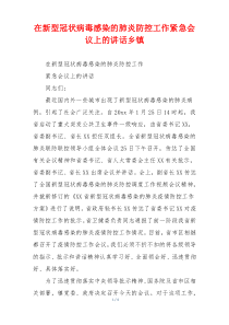 会议强调加强疫情防控,确保措施到位,保障群众健康安全,共同抗击疫情,如何更有效防控?下面是网友整理分享的在新型冠状病毒感染的肺炎防控工作紧急会议上的讲话乡镇相关资料,供大家学习参考,喜欢就分享吧!
