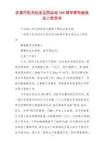 发言强调传承五四精神,激励青年干部勇担时代重任,为实现中国梦不懈奋斗。以下由网友整理分享的在委厅机关纪念五四运动100周年青年座谈会上的发言相关文档,供您学习参考,喜欢就分享吧!