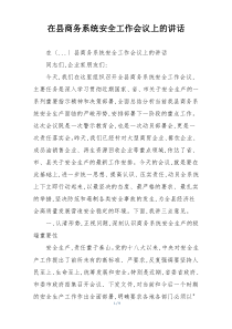 会议强调加强安全意识,落实责任,排查隐患,确保商务系统平稳运行。公文包网友为您分享整理的“在县商务系统安全工作会议上的讲话”范文资料,以供您参考学习之用,希望喜欢。