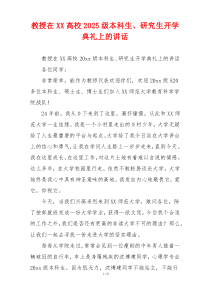 欢迎新同学加入学术大家庭,期待共同探索知识奥秘,勇攀科学高峰,共创辉煌未来。下面是网友整理编辑的教授在XX高校2025级本科生、研究生开学典礼上的讲话相关范文,供大家参考学习,喜欢就下载支持!