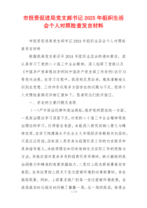 市投资促进局党支部书记在组织生活会上深入剖析自身问题,提出整改措施,明确努力方向。公文包网友为您分享整理的“市投资促进局党支部书记2025年组织生活会个人对照检查发言材料”范文资料,以供您参考学习之用,希望喜欢。