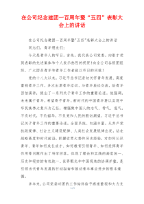 在公司纪念建团一百周年暨“五四”表彰大会上,回顾了百年奋斗历程,表彰了杰出青年,激励大家继续发扬五四精神,共创美好未来。下面是网友整理编辑的在公司纪念建团一百周年暨“五四”表彰大会上的讲话相关范文,供大家参考学习,喜欢就下载支持!