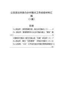 公安派出所通过加强治安管理、服务群众、化解矛盾纠纷等措施,有效促进乡村和谐稳定与经济发展。公文包网友为您分享整理的“5篇公安派出所助力乡村振兴工作经验材料汇编”范文资料,以供您参考学习之用,希望喜欢。