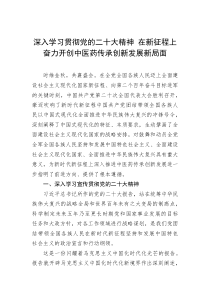 深入学习贯彻党的二十大精神,推动中医药传承创新发展,为健康中国建设贡献力量。以下由网友整理分享的“深入学习贯彻党的二十大精神在新征程上奋力开创中医药传承创新发展新局面”相关材料,便您学习参考,喜欢就分享给朋友吧!