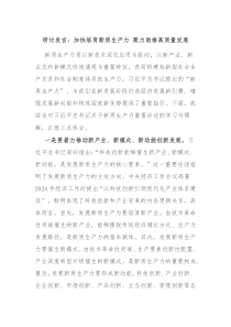 加快培育新质生产力,需聚焦科技创新与产业升级,强化人才支撑,优化营商环境,形成发展合力,如何更有效推进?下面是网友整理分享的研讨发言加快培育新质生产力聚力助推高质量发展相关资料,供大家学习参考,喜欢就分享吧!