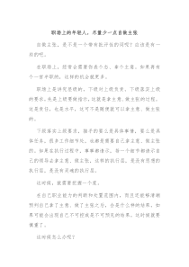 职场上的年轻人应多倾听前辈意见,避免过多自作主张,以促进团队和谐与个人成长。下面是网友整理编辑的职场上的年轻人尽量少一点自做主张相关范文,供大家参考学习,喜欢就下载支持!