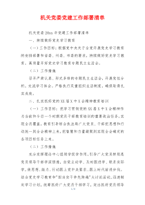 加强理论学习,推进组织建设,强化作风建设,提升服务能力,激发党建活力!下面是网友整理分享的机关党委党建工作部署清单相关资料,供大家学习参考,喜欢就分享吧!