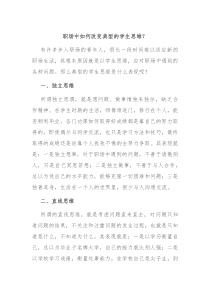 职场需主动承担责任 注重团队合作与沟通 提升解决问题能力 培养时间管理意识 能否有效转变思维关键在于实践?以下是阿拉网友分享的“职场中如何改变典型的学生思维”,供您学习参考,希望有所用途!