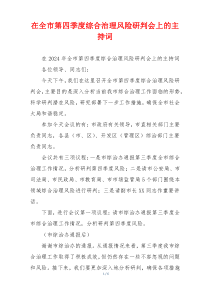 会议旨在分析第四季度全市综合治理风险,探讨应对策略,促进社会稳定与安全,共筑和谐家园!以下由网友整理分享的在全市第四季度综合治理风险研判会上的主持词相关文档,供您学习参考,喜欢就分享吧!