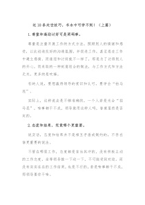 处世技巧源自生活实践与观察,书本知识有限,真实体验方能深刻领悟。公文包网友为您分享整理的“这10条处世技巧书本中可学不到上篇”范文资料,以供您参考学习之用,希望喜欢。