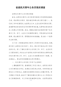 调查揭示省级机关青年公务员普遍面临工作压力大、晋升机会有限、培训需求高、期待更公平激励机制。以下由网友整理分享的省级机关青年公务员现状调查相关文档,供您学习参考,喜欢就分享吧!