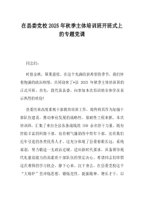 强调理论学习与实践结合,提升党性修养,增强服务意识,推动地方经济社会高质量发展。公文包网友为您分享整理的“在县委党校2025年秋季主体培训班开班式上的专题党课”范文资料,以供您参考学习之用,希望喜欢。