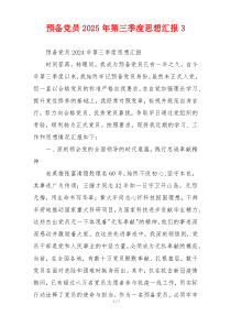 预备党员在第三季度认真学习党的理论,积极参加组织生活,不断提升自身政治素养和工作能力。以下由网友整理分享的预备党员2025年第三季度思想汇报3相关文档,供您学习参考,喜欢就分享吧!