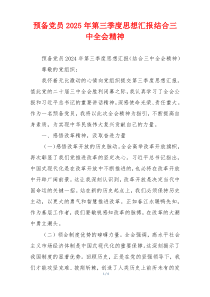 深入学习三中全会精神,坚定理想信念,增强责任感使命感,为实现中华民族伟大复兴而不懈奋斗!下面是小编为您整理的预备党员2025年第三季度思想汇报结合三中全会精神范例,仅供参考,希望对您有所帮助。
