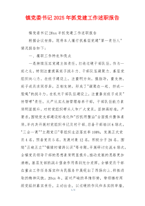 围绕党建引领,强化队伍建设,提升服务水平,推动乡村振兴,促进经济社会全面发展,成效如何?以下是小编为您整理分享的“镇党委书记2025年抓党建工作述职报告”相关内容,供您学习参考!