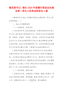 镇党委书记、镇长深入贯彻法治建设要求,强化组织领导,完善制度机制,推进依法行政,提升社会治理效能。以下由网友整理分享的“镇党委书记、镇长2025年度履行推进法治建设第一责任人职责述职报告3篇”相关材料,便您学习参考,喜欢就分享给朋友吧!
