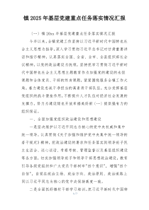 基层党组织建设扎实推进,党员队伍素质全面提升,服务群众能力显著增强,党建工作成效斐然!公文包网友为您分享整理的“镇2025年基层党建重点任务落实情况汇报”范文资料,以供您参考学习之用,希望喜欢。