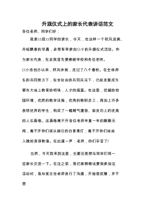 升旗仪式上家长代表发言,表达了对学校教育的支持与感谢,强调家校合作的重要性,共同促进孩子健康成长。公文包网友为您分享整理的“升旗仪式上的家长代表讲话范文”范文资料,以供您参考学习之用,希望喜欢。